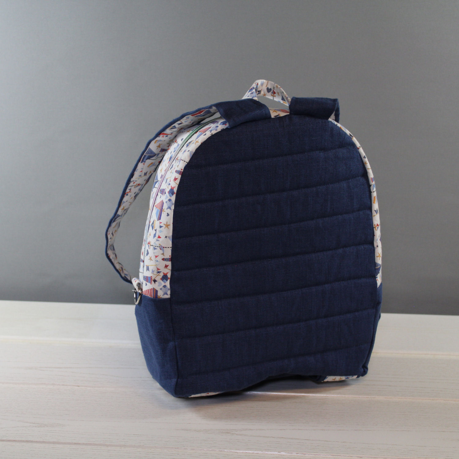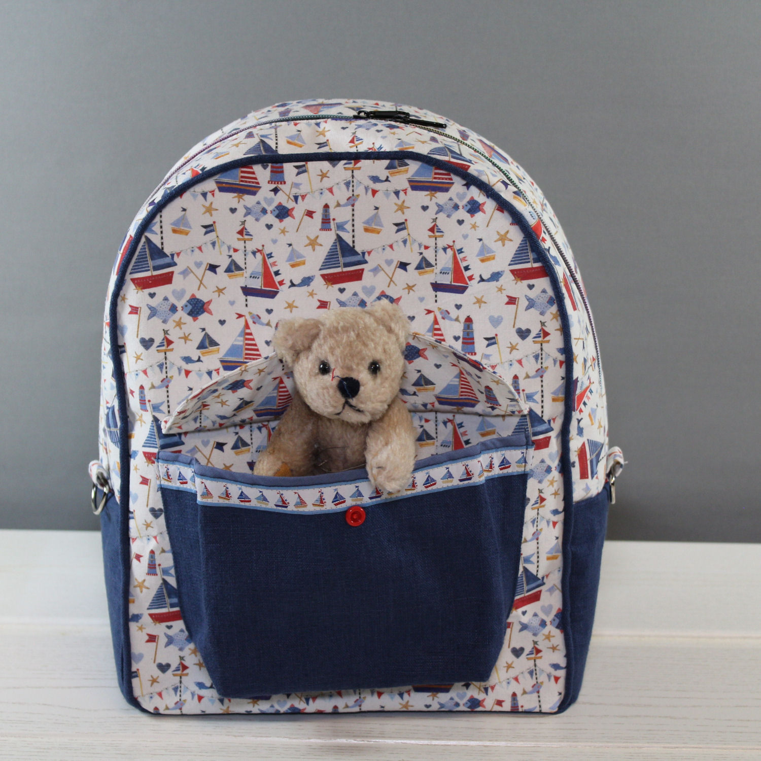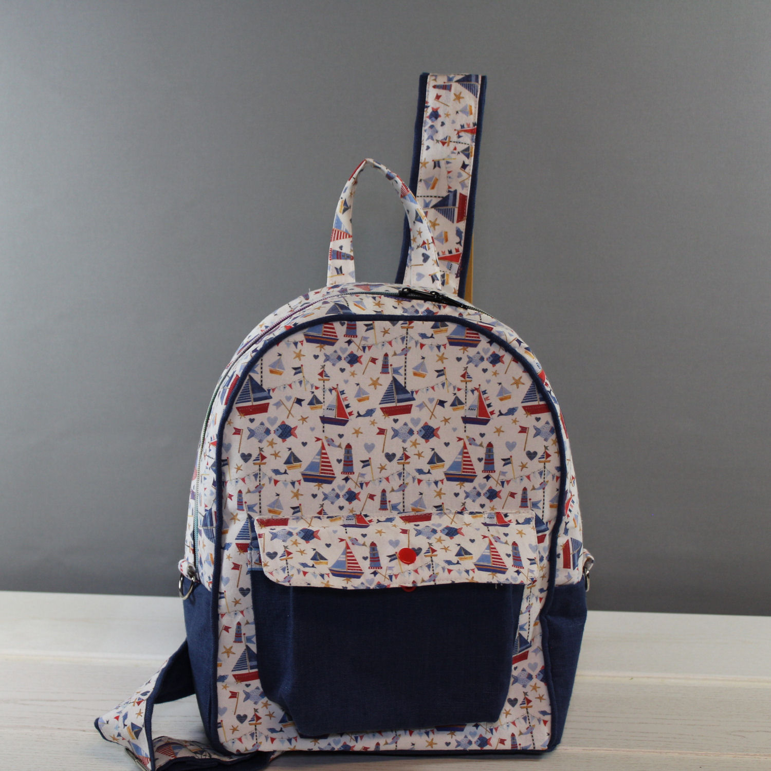 Ein lustiger Kinderrucksack in dem viele Dinge wie, Pausenbrot, Wasserflasche oder ein Kuscheltier ihren Platz finden und mit den bunten Segeln auf dem Meer auch Spaß beim Tragen macht.