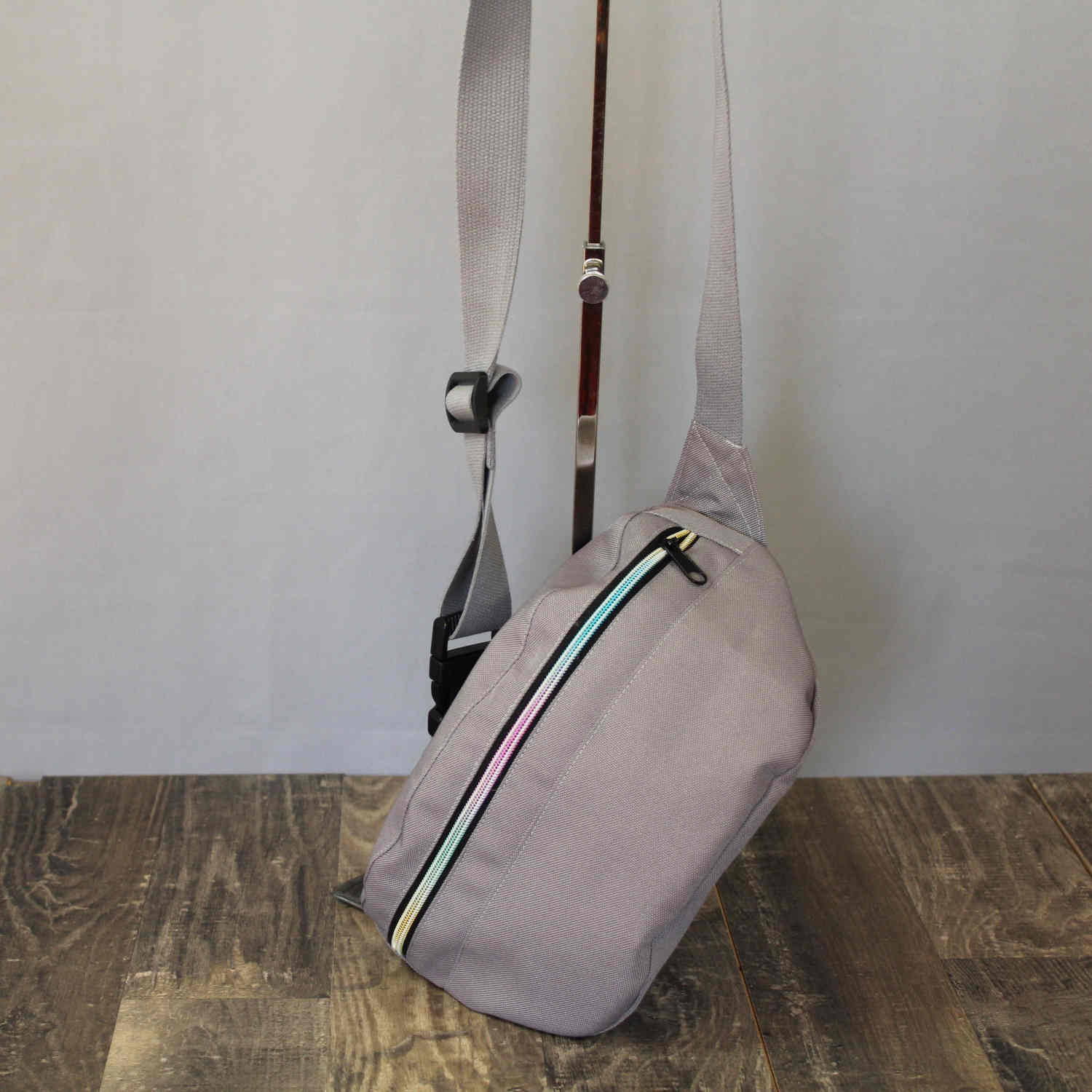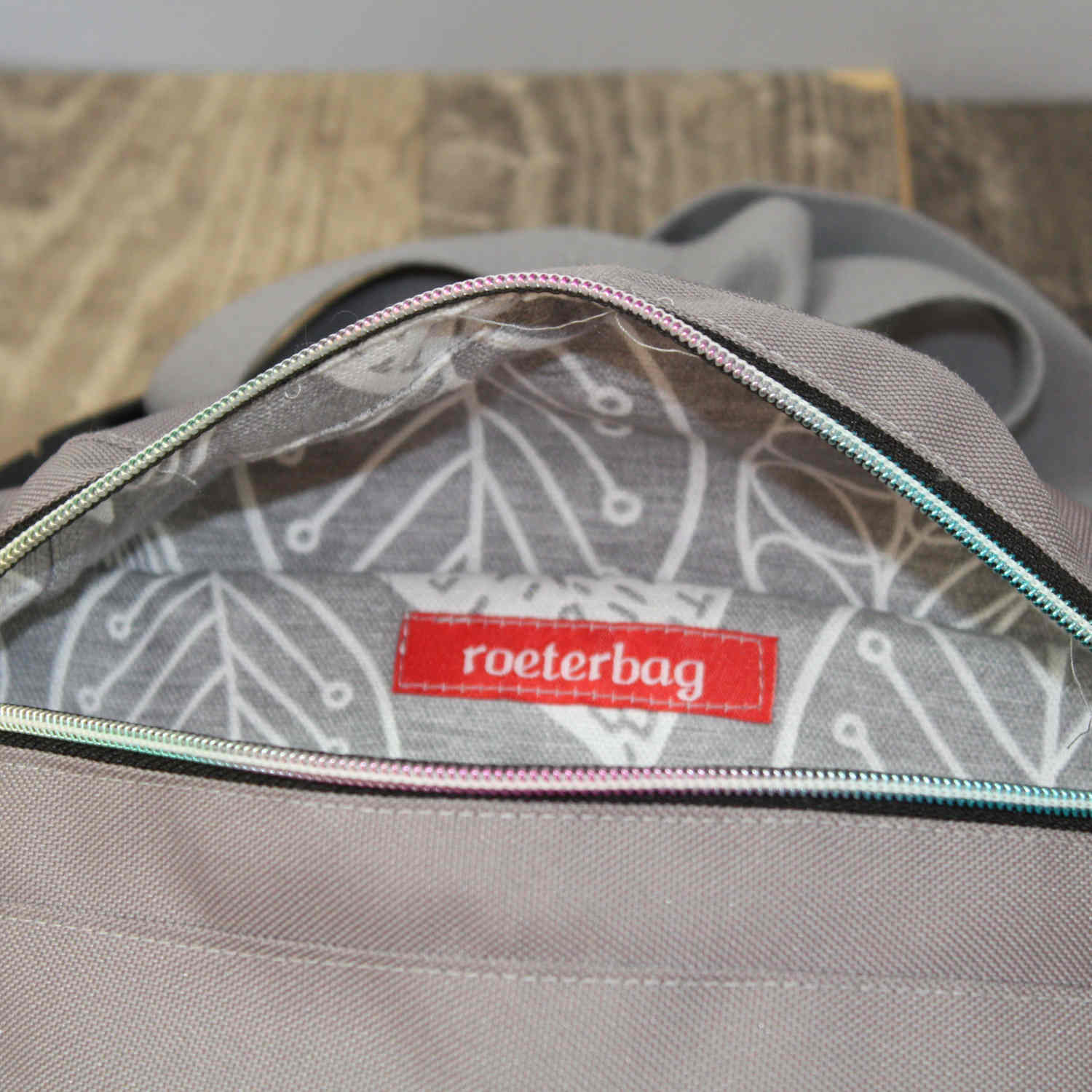 Das Material der Tasche ist unempfindlich und sehr leicht, der bunte Reißverschluss ist ein kleiner Kontrast zu dem Grau.