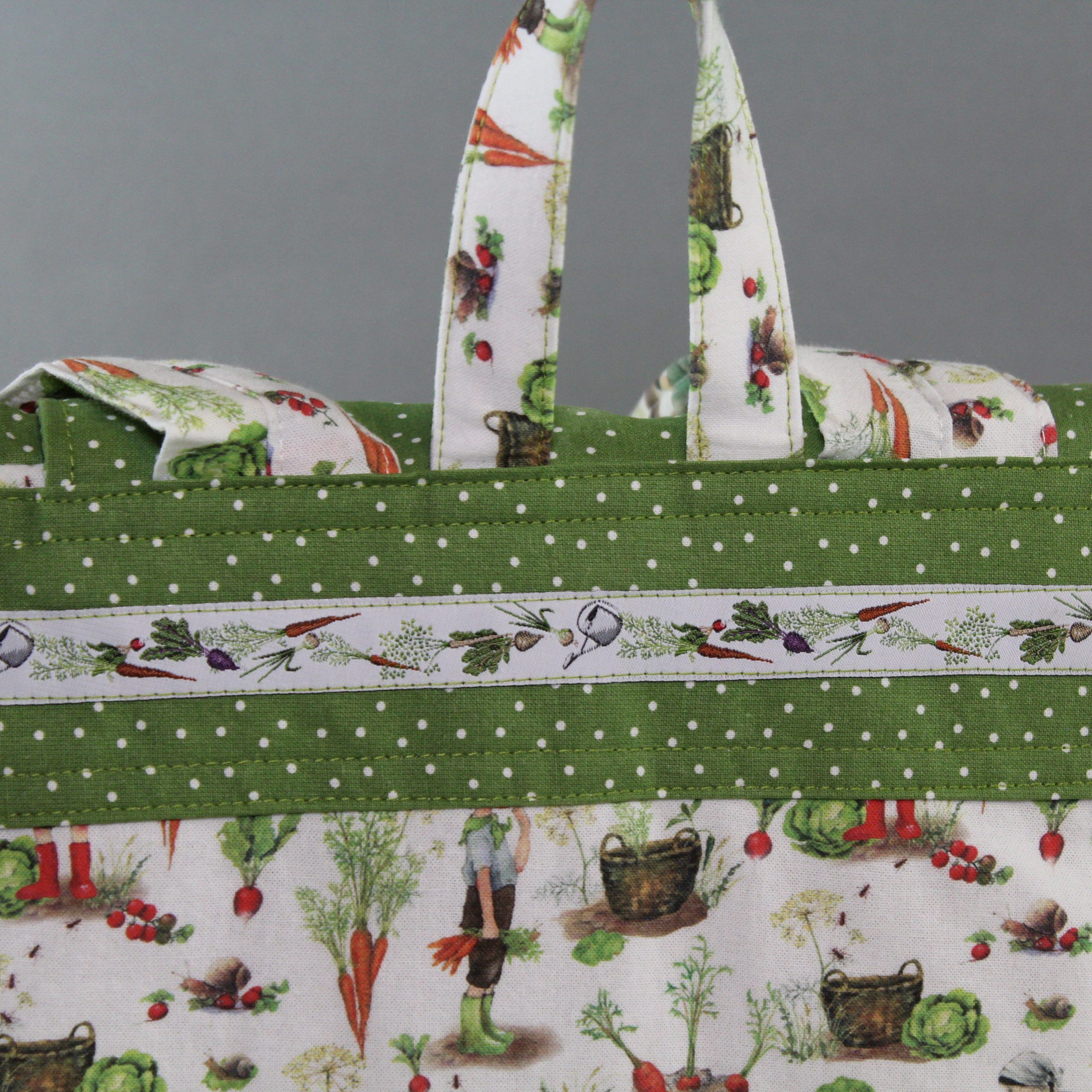 Das Material ist 100% Baumwolle, Volumenvlies, Gurtband ,Karabinerhaken