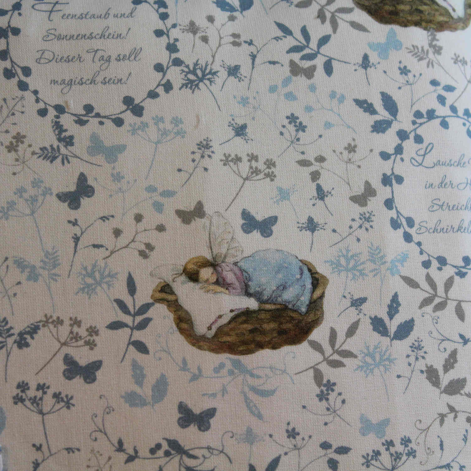 Kleine Elfen schlafen in einem Körbchen in einem Blätterwald.