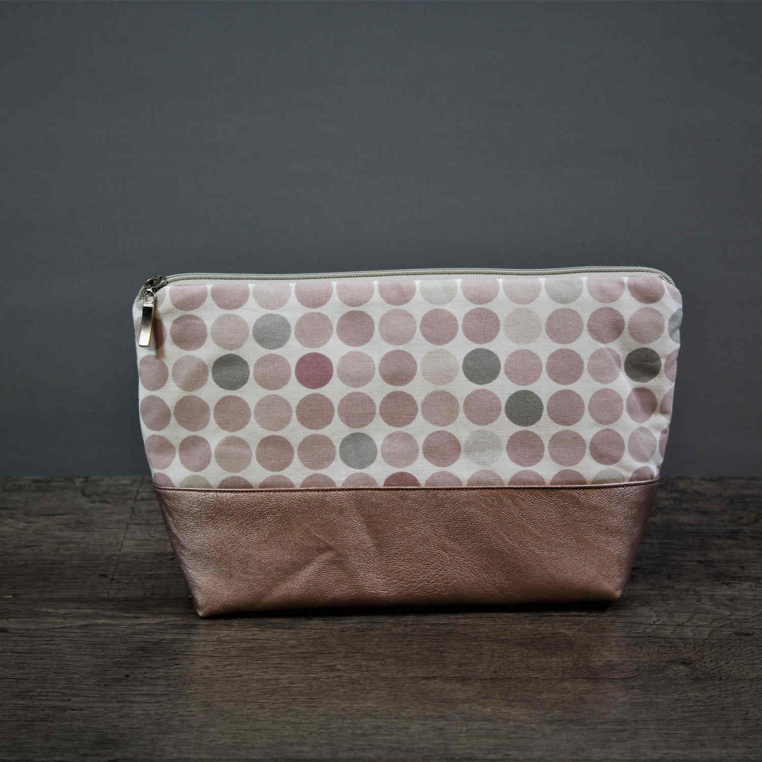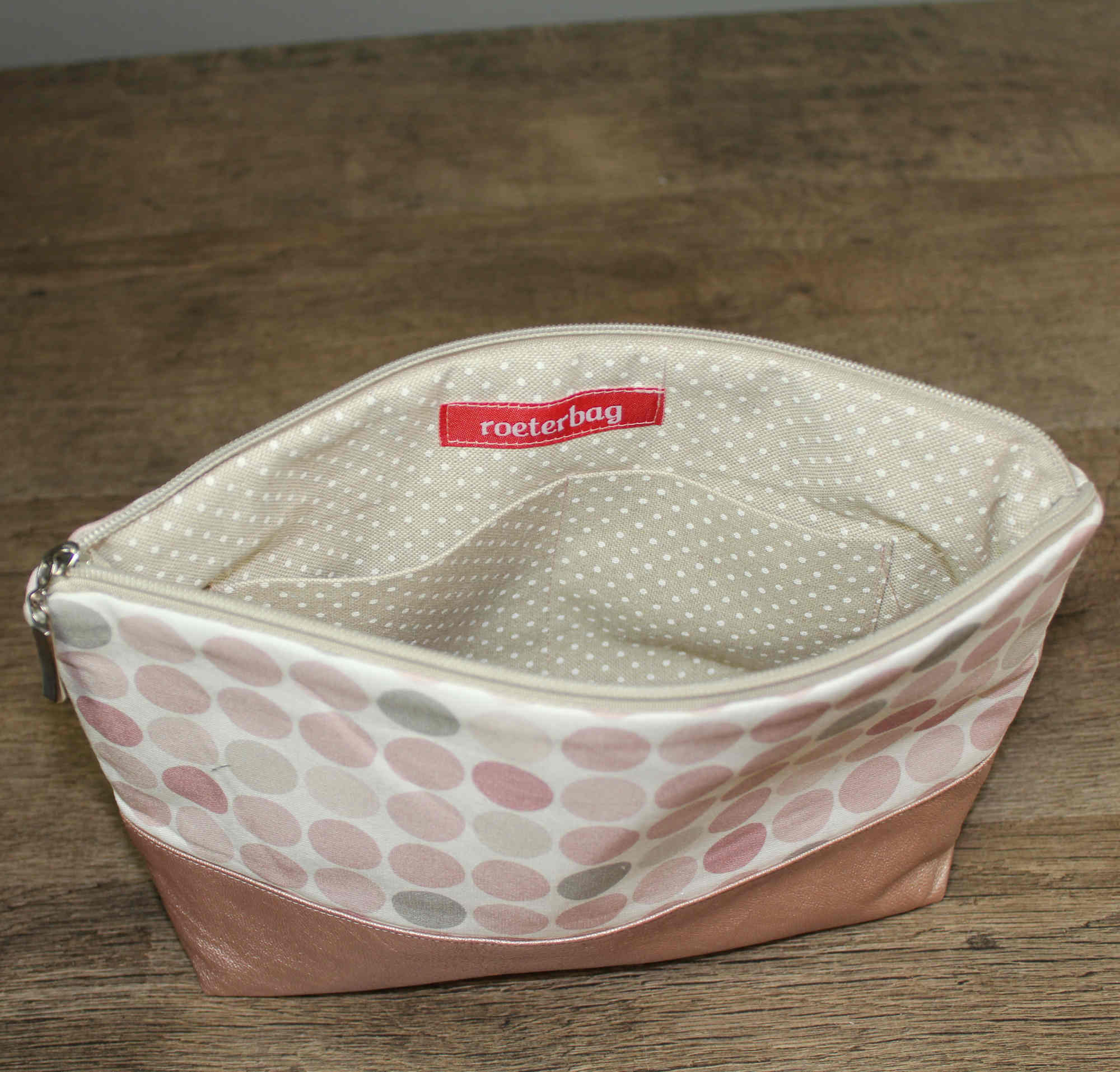 Eine Kosmetiktasche in einer schönen Baumwoll- Kunstleder Kombination in Altrosa.