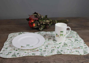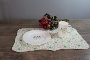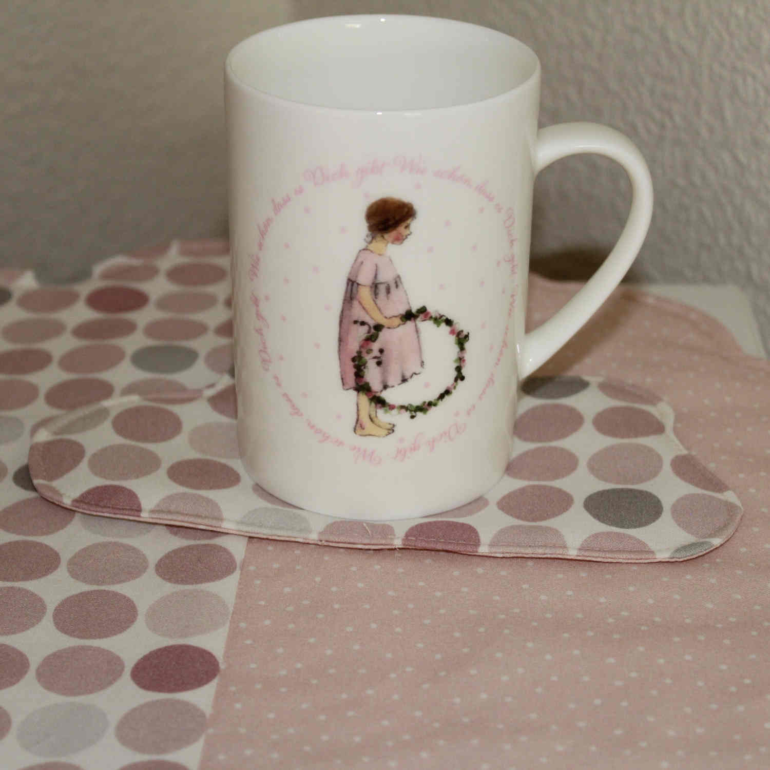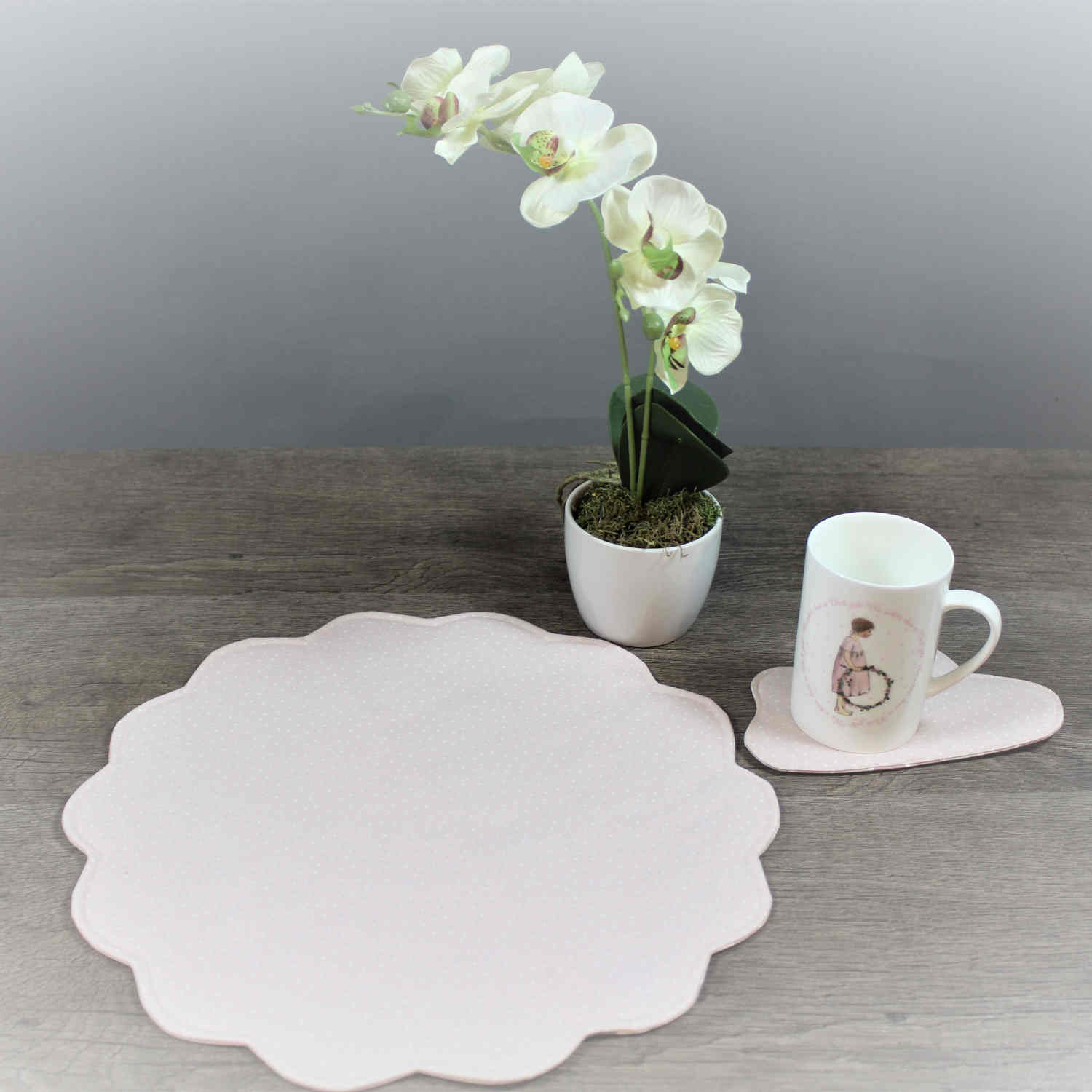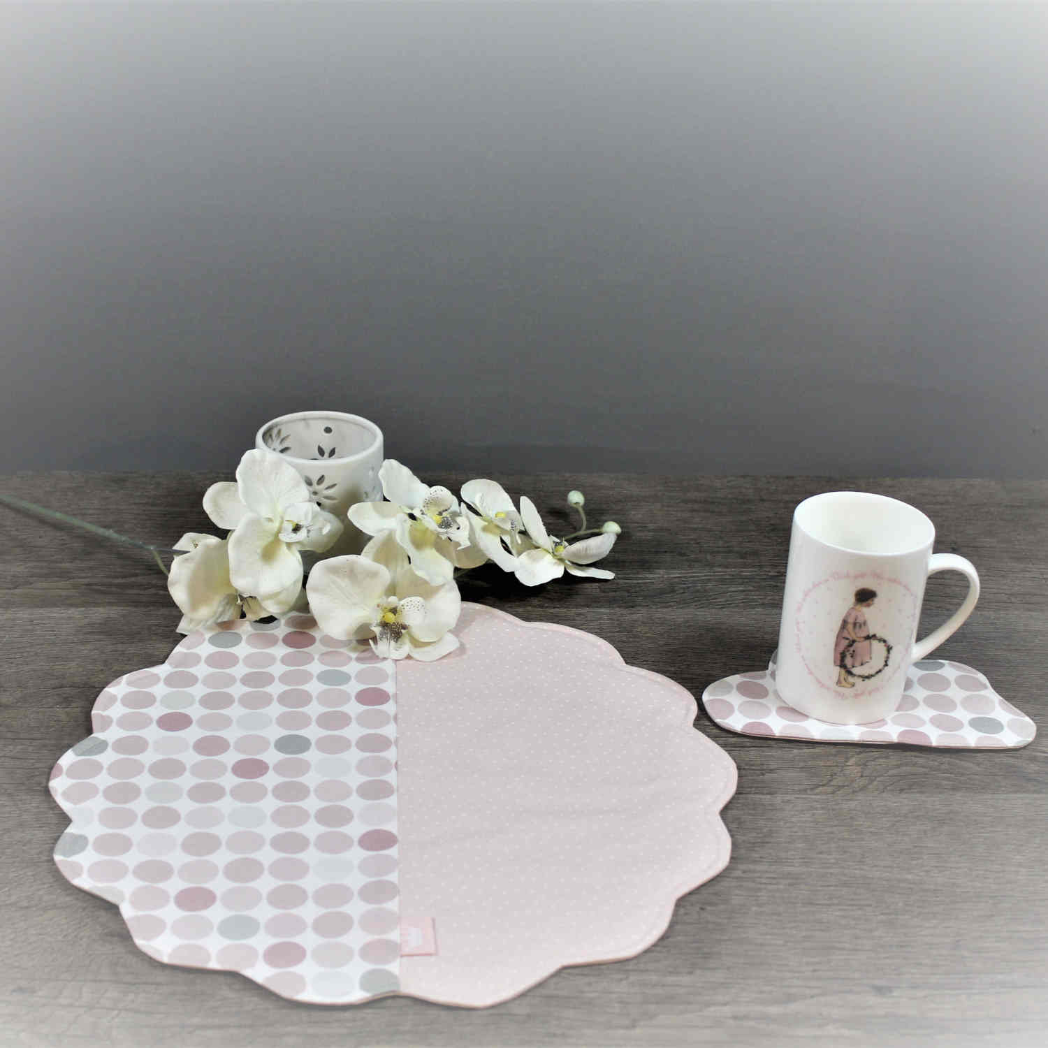 Dieses Dreierset besteht aus einem runden Tischset, einem kleinen Set ( nur für die Tasse) und