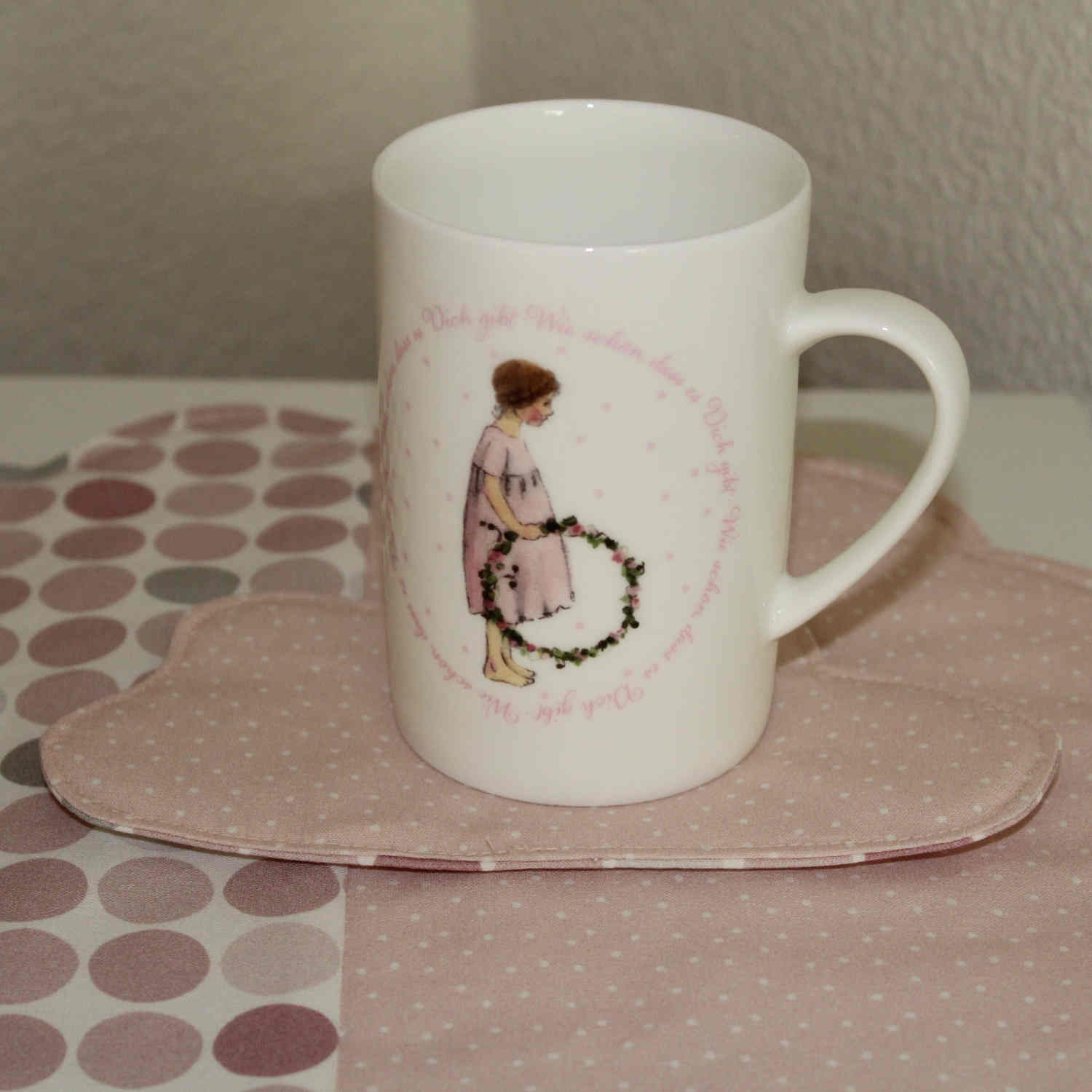 einem bezaubernden Becher aus feinem Porzellan mit dem passenden Motiv zu den Sets.
