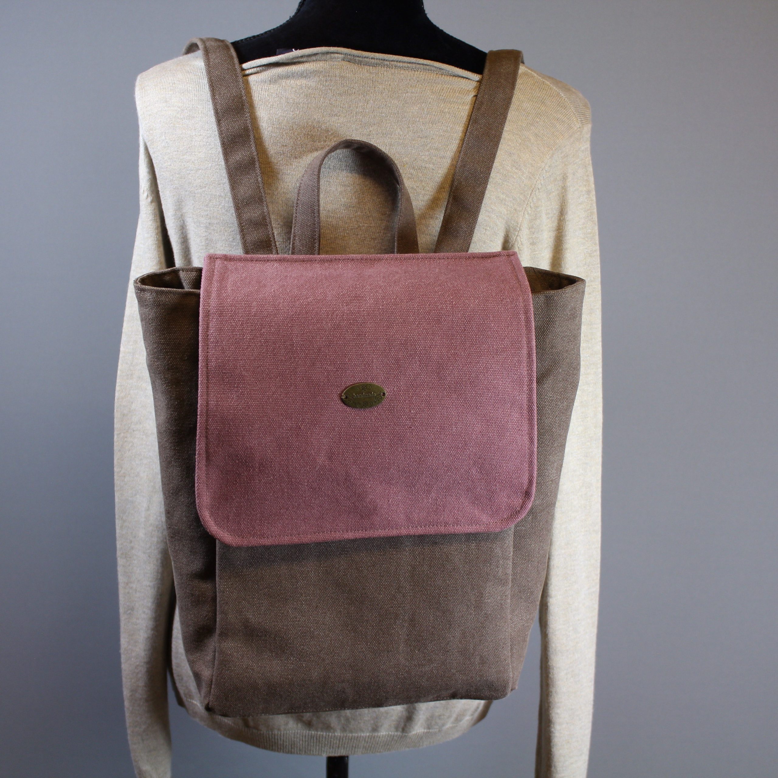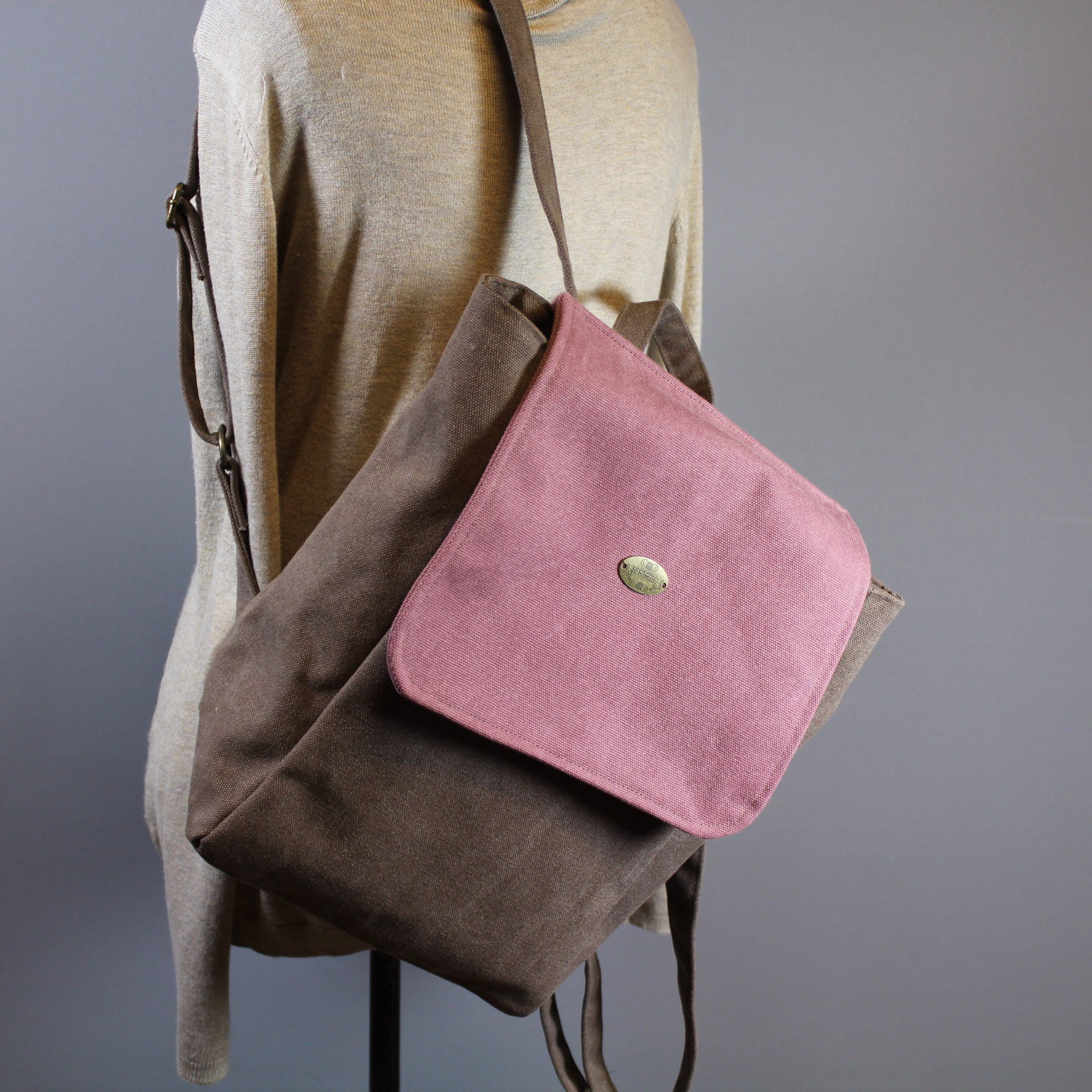 Es macht Spaß diesen Rucksack zu tragen. Er sieht gut aus, hat ein tolles Material und dezente Farben, in Braun und Dunkelrosa. Der Deckel wird mit einem Magnetknopf geschlossen, zusätzlich kann auch noch die Tasche selbst mit einem Magnetknopf geschlossen werden.