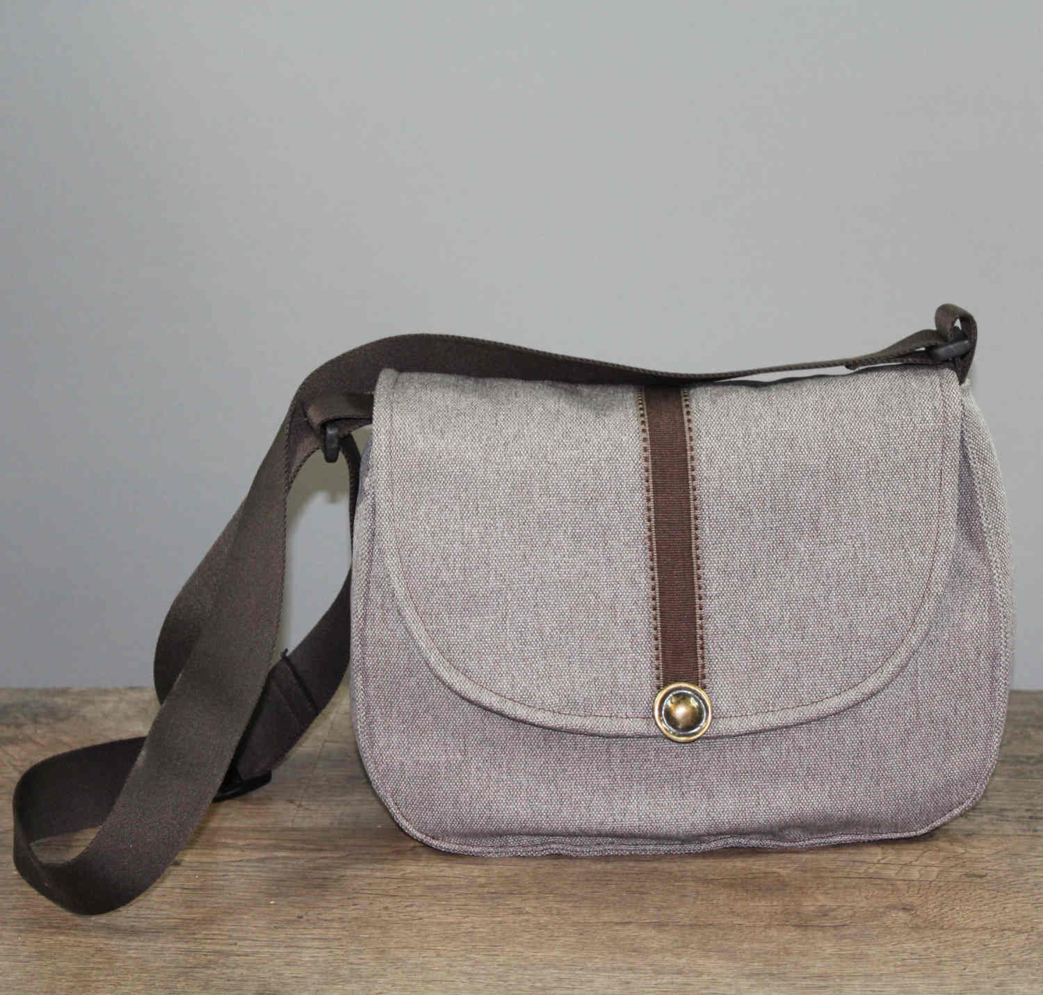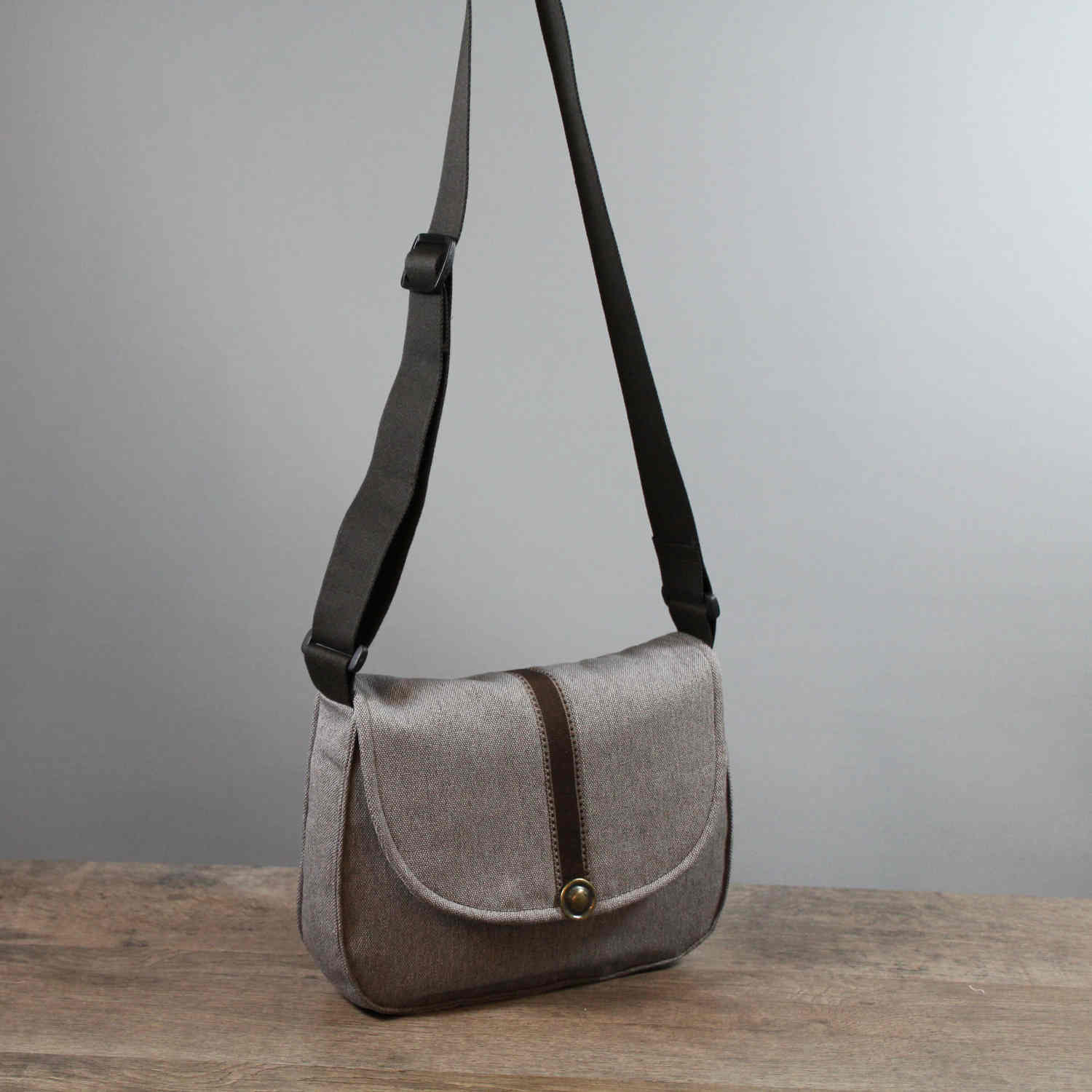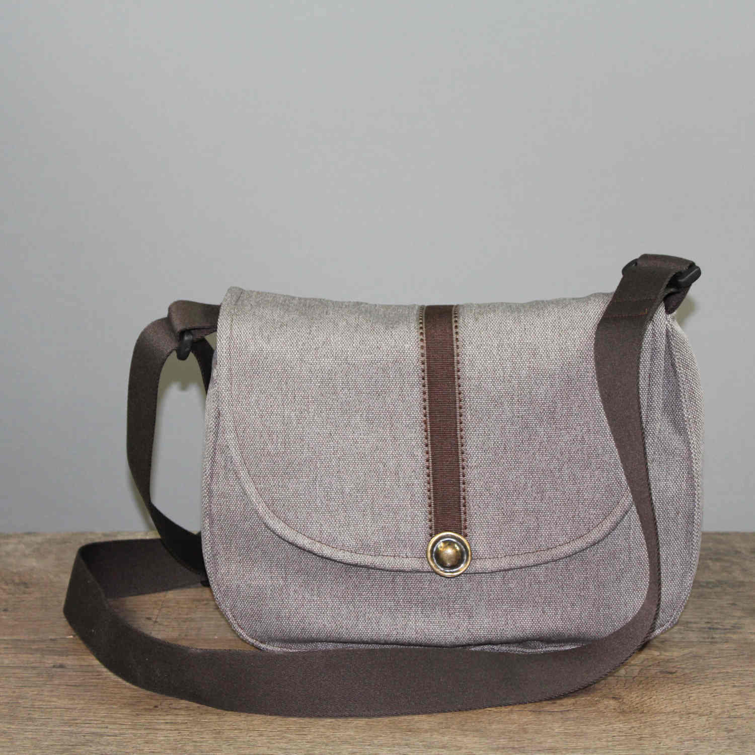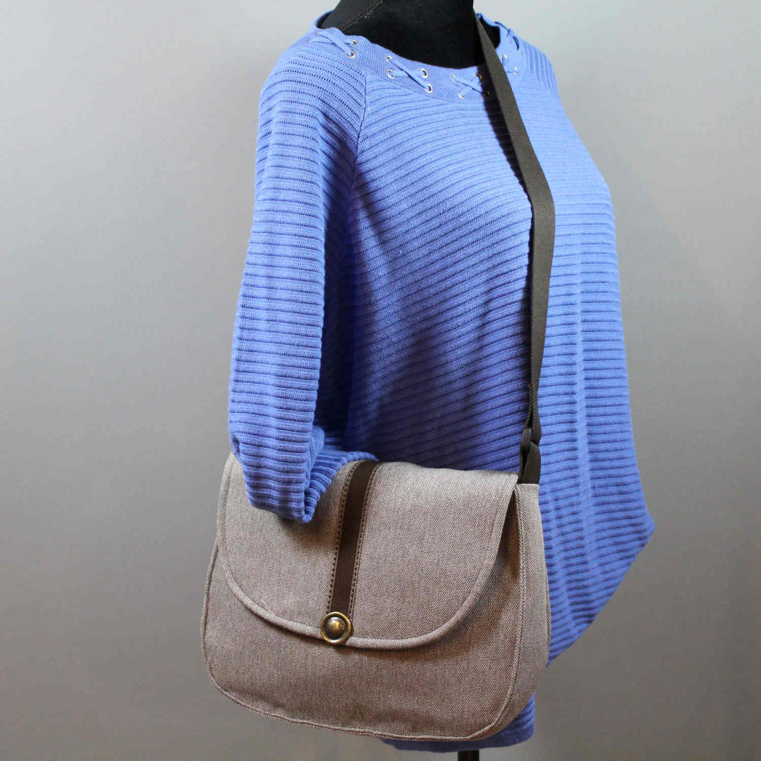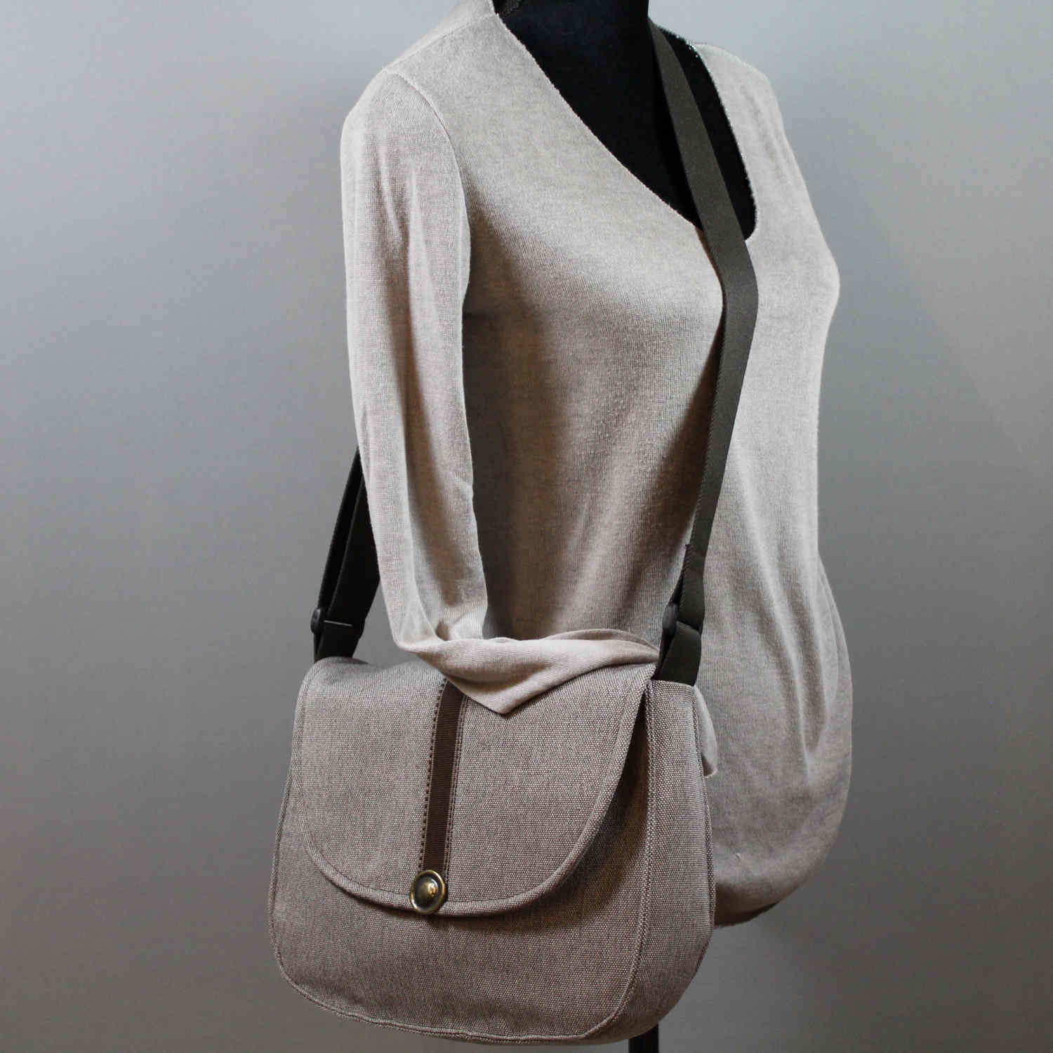Eine schicke mittelgroße Tasche in einem beige-braunen melierten Polyester.