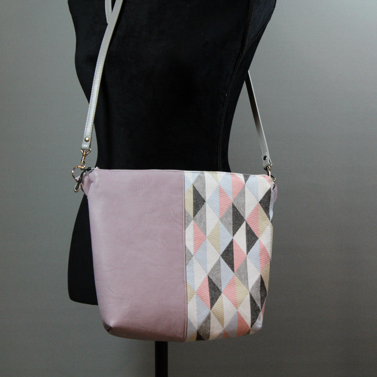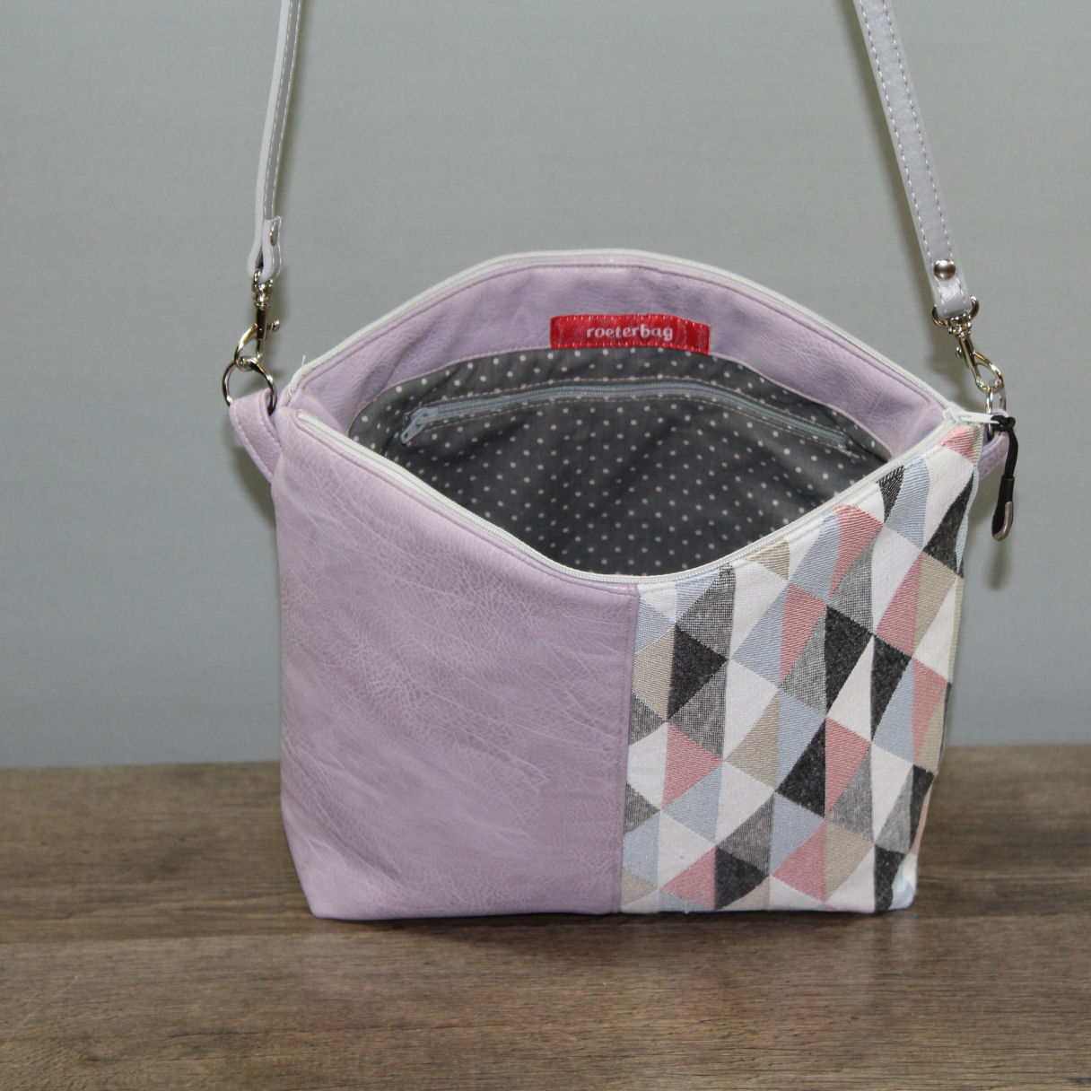 Ein Kunstleder aus einem hellen Lila und ein farblich passendes Baumwollmischgewebe, eine schöne Kombination.