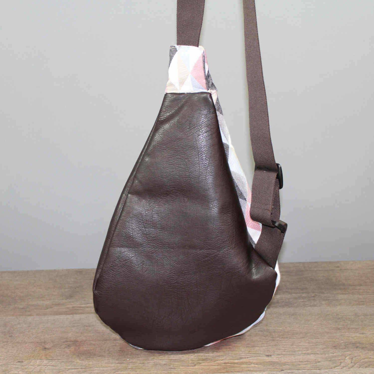 Das Material ist aus weichem Kunstleder, in der Farbe Braun und ein farblich abgestimmten MIschgewebe.
