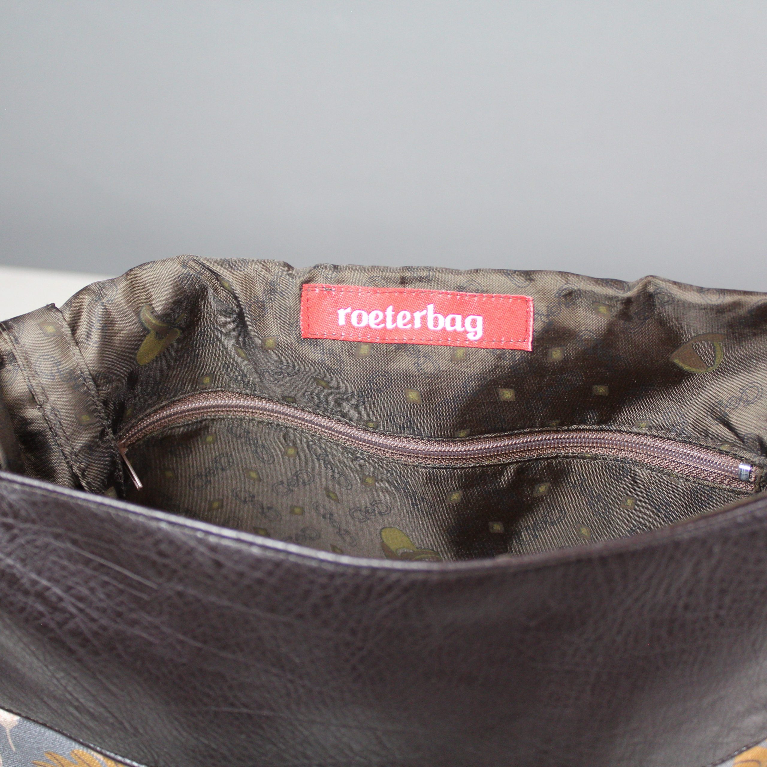 Das Futter ist aus einem braunem Polyesterstoff.