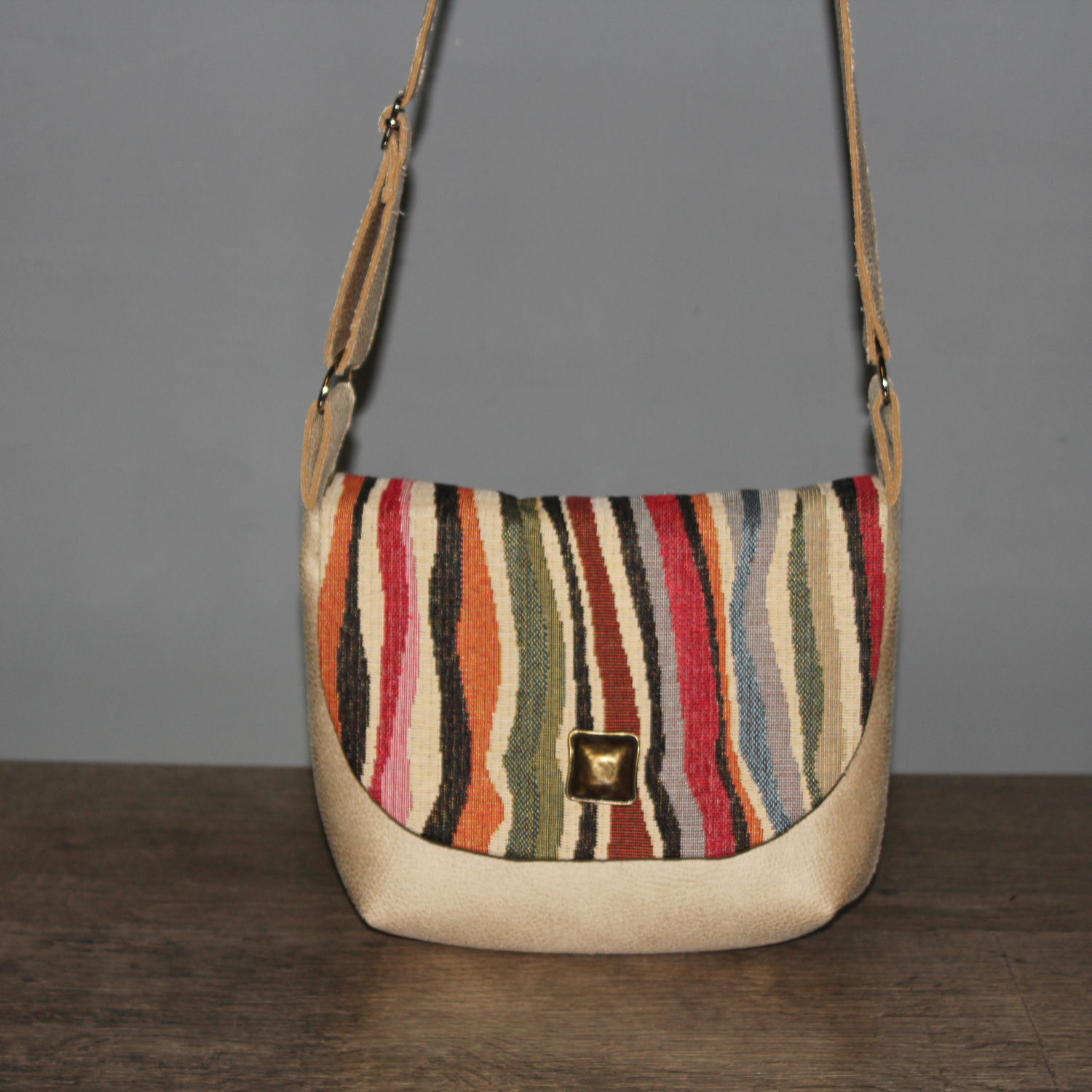 Helles weiches Kunstleder mit einer schönen wellenförmigen Farbkombination als Umschlag, eine schicke Tasche die sich ihrer Garderobe anpasst.