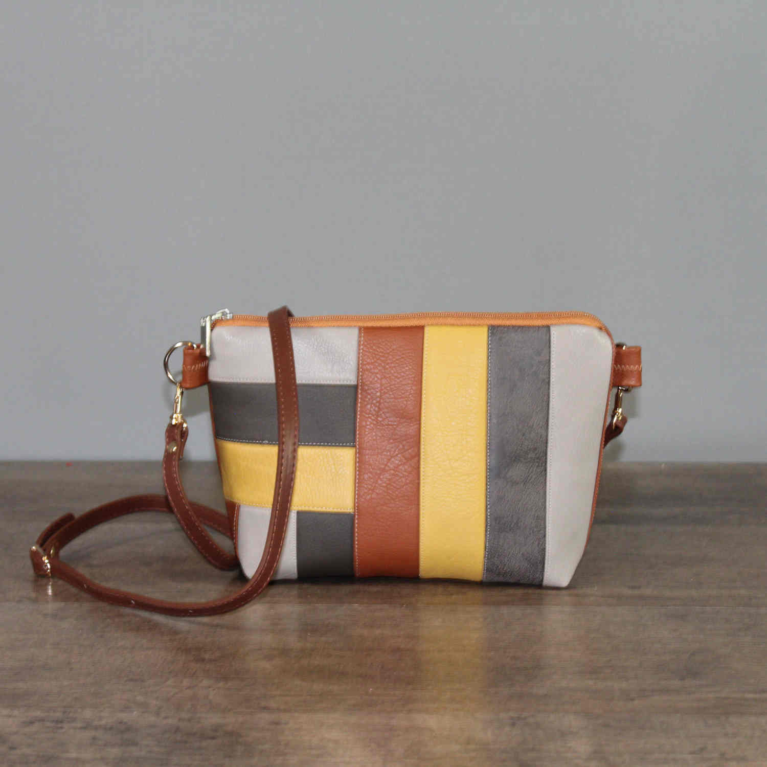 Eine schöne Umhängetasche in einem Streifenlook aus Kunstleder, in verschiedenen Farben ,